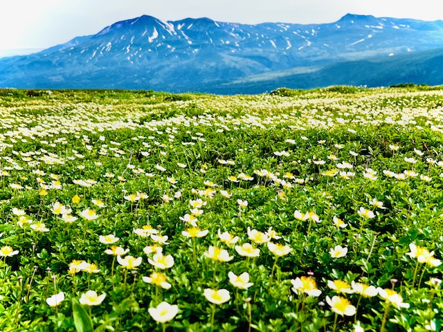 ~大雪山・化雲岳からみるチングルマと旭岳